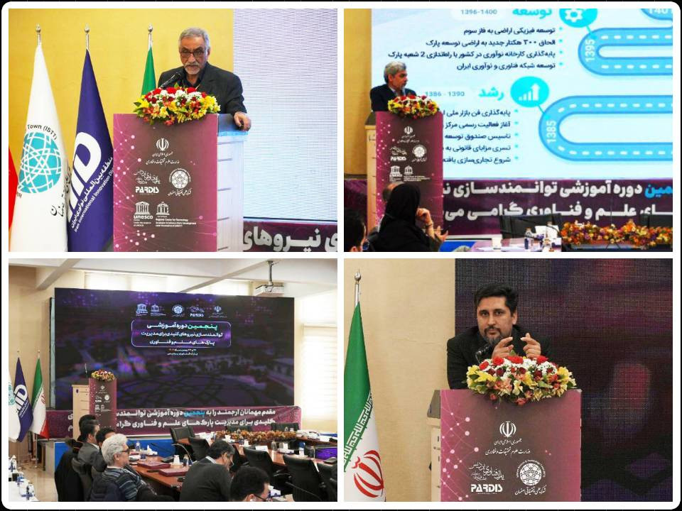 انطلقت الدورة الخامسة من برنامج التمكين المتخصص للكوادر الرئيسية في منتزهات العلوم والتكنولوجيا الإيرانية في منتزه تكنولوجيا برديس (PTP). ويهدف الحدث الذي يستمر يومين، وبدعم من وزارة العلوم ومنظمة اليونسكو، إلى إعادة تعريف دور المنتزهات التكنولوجية في اقتصاد المعرفة، مع التركيز على الحوكمة والتعاون الدولي والتواصل الفعال.