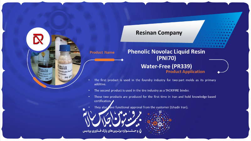 - راتنج ألكيل فينول نوفولاك الصلب – من إنتاج رزيتان، يستخدم كمادة لاصقة في صناعة الإطارات والمنتجات المطاطية لتحسين الالتصاق بين الطبقات.
